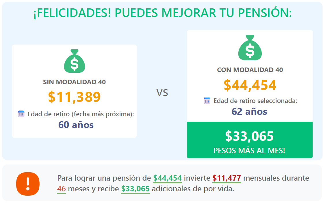 ✅ Pensión calculada con el monto máximo de Modalidad 40