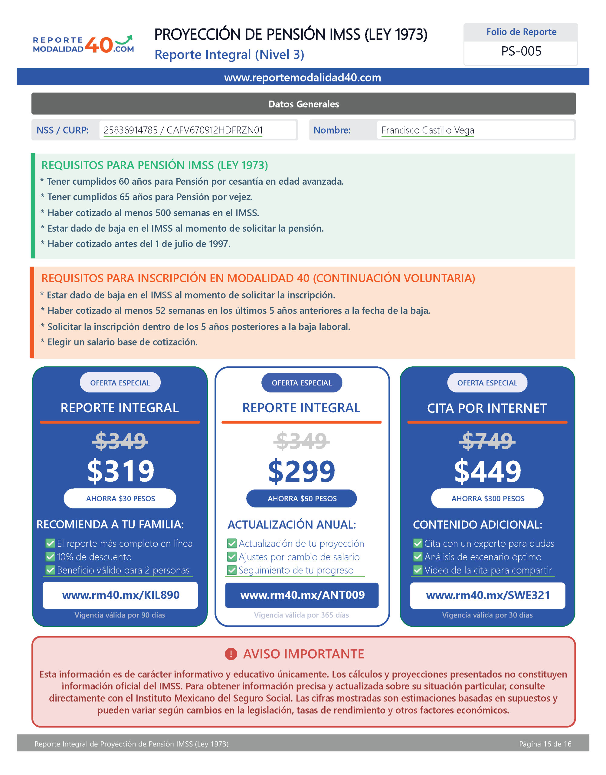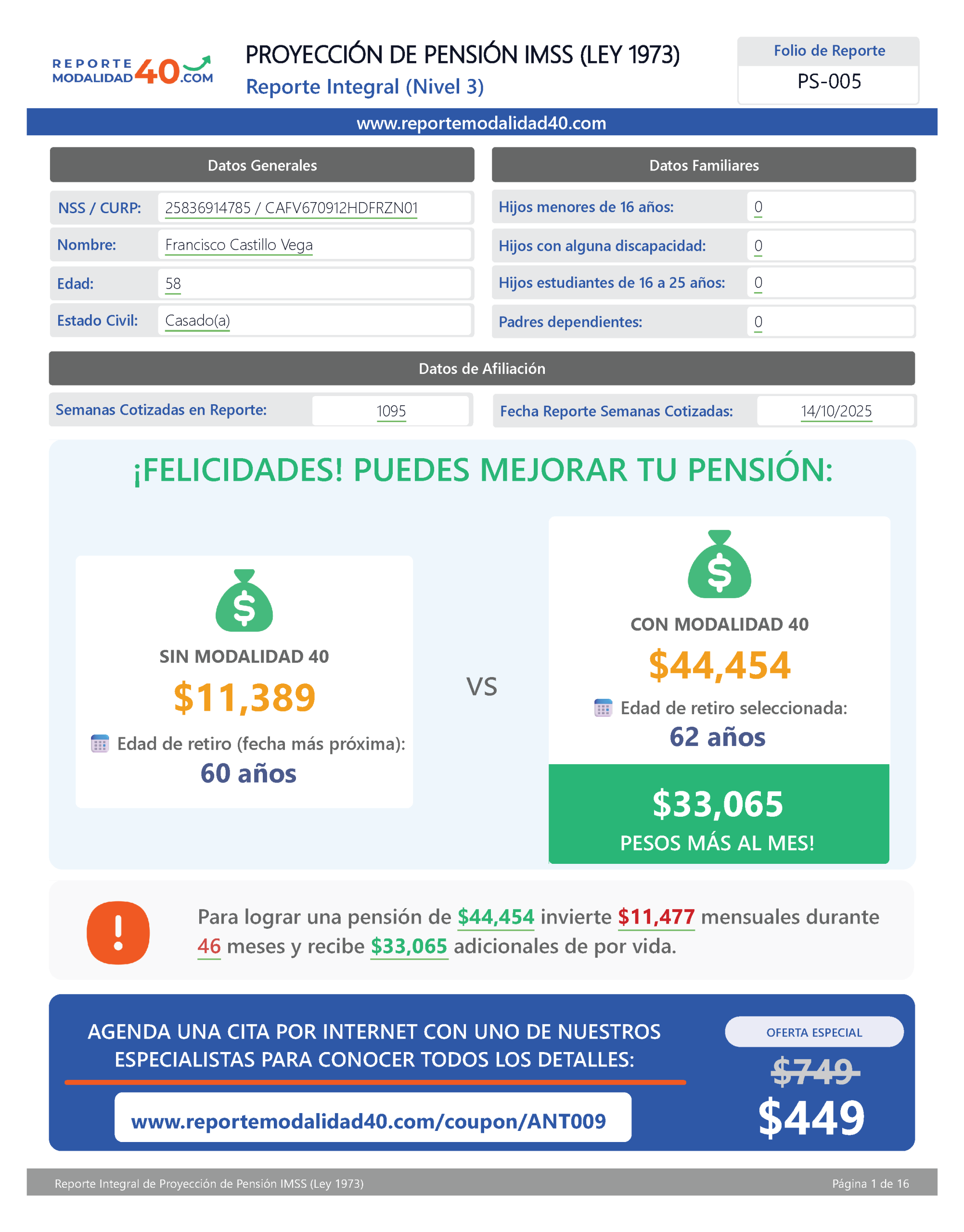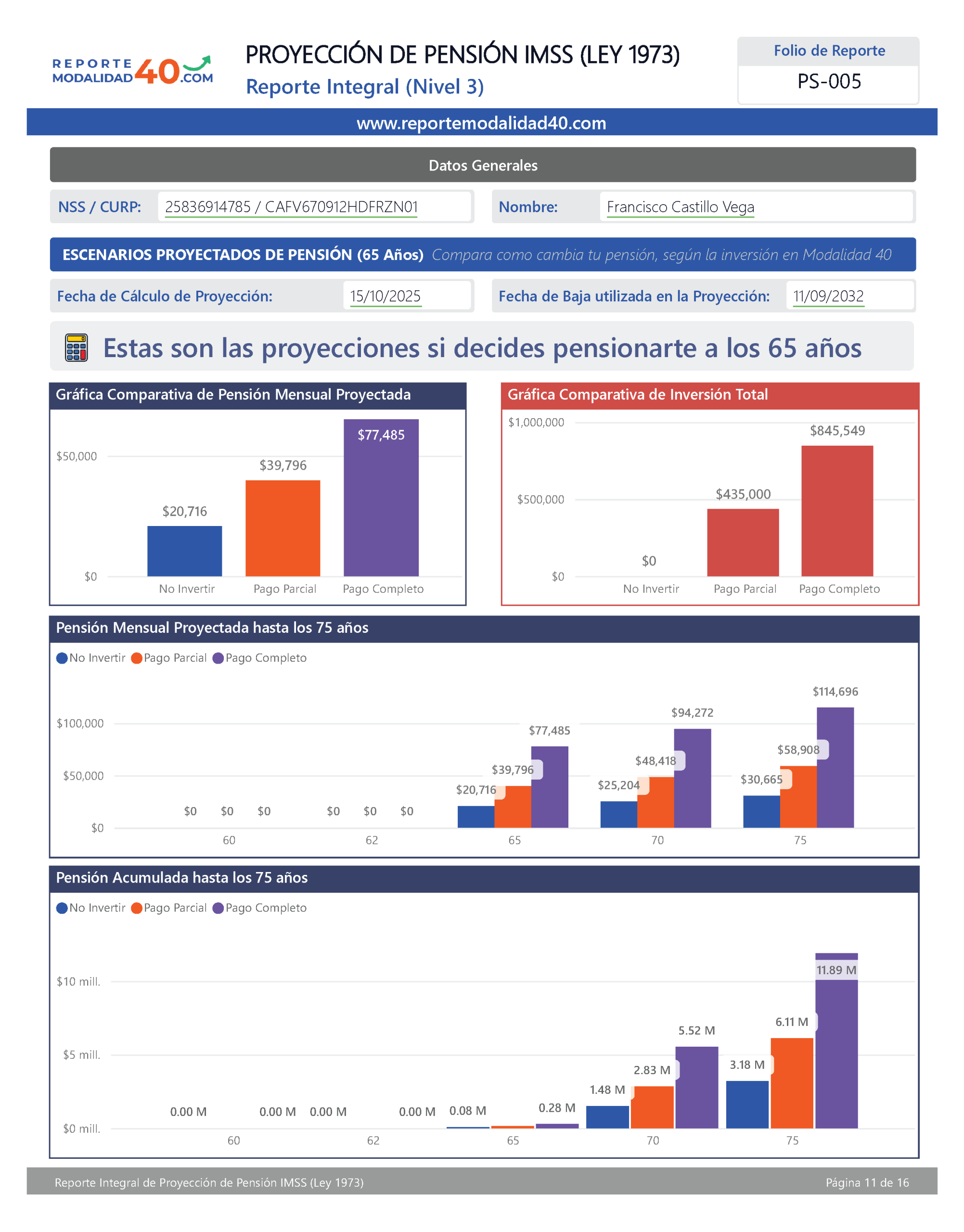 El Reporte Integral es el análisis más completo y estratégico para decidir cómo maximizar tu pensión con Modalidad 40.